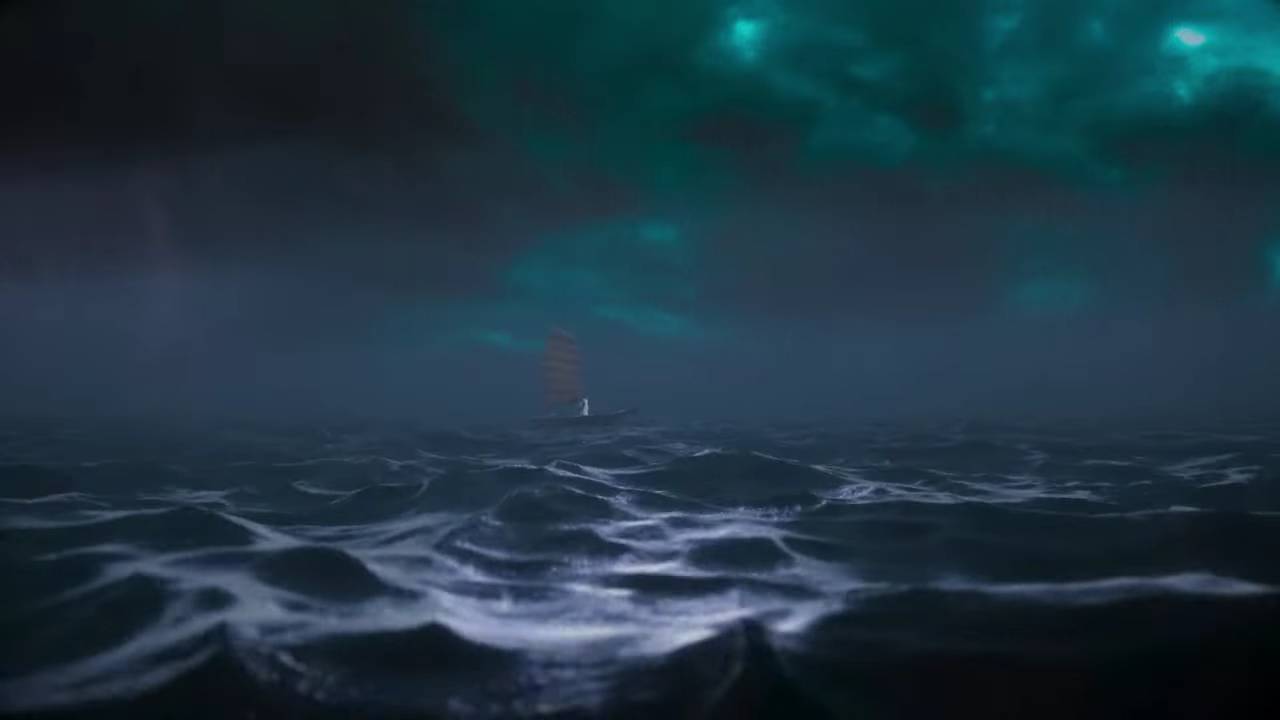 3月30日17時頃には、それまで真っ暗だった画面が暗い海面の映像へと切り替わり、波が揺れる様子が映し出されるようになりました。そして3月31日17時頃には、その暗い海の上に帆を張った小舟がゆっくりと進んでいく映像が新たに加わりました。